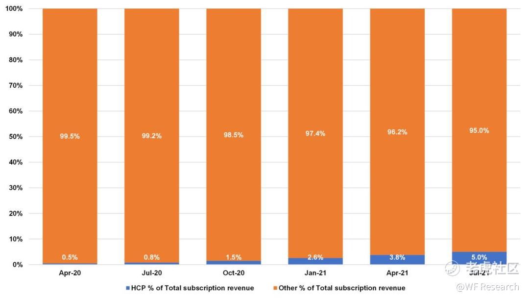 下图说明,HCP目前的收入占总订阅收入的 5%。