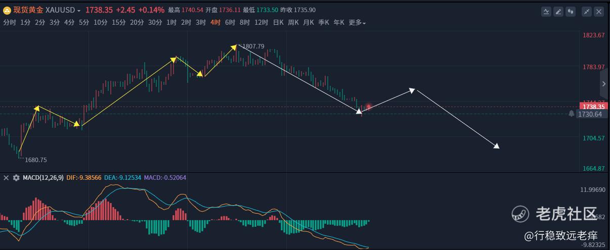 谨慎乐观,但也不要盲目悲观,总体来说,黄金的B浪反弹已经在路上,随着美指的高位回踩预期明显,黄金反弹还有一定空间。适当把握。