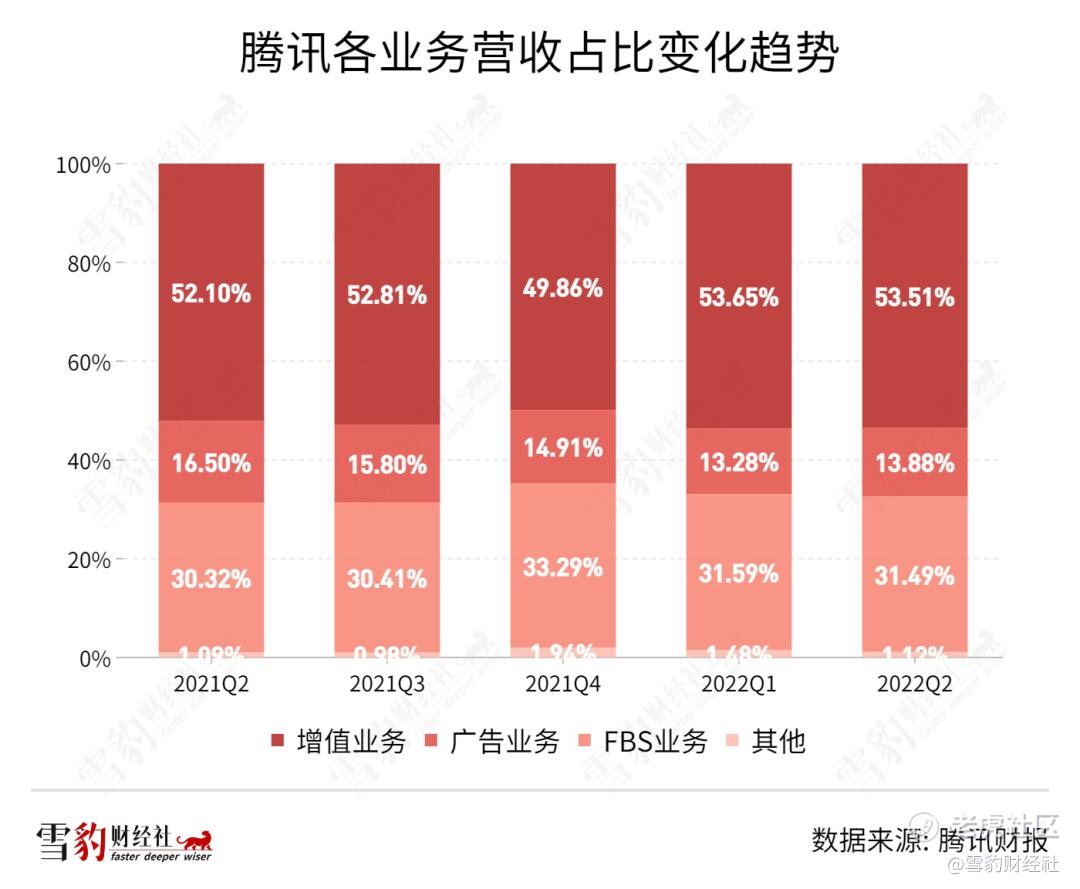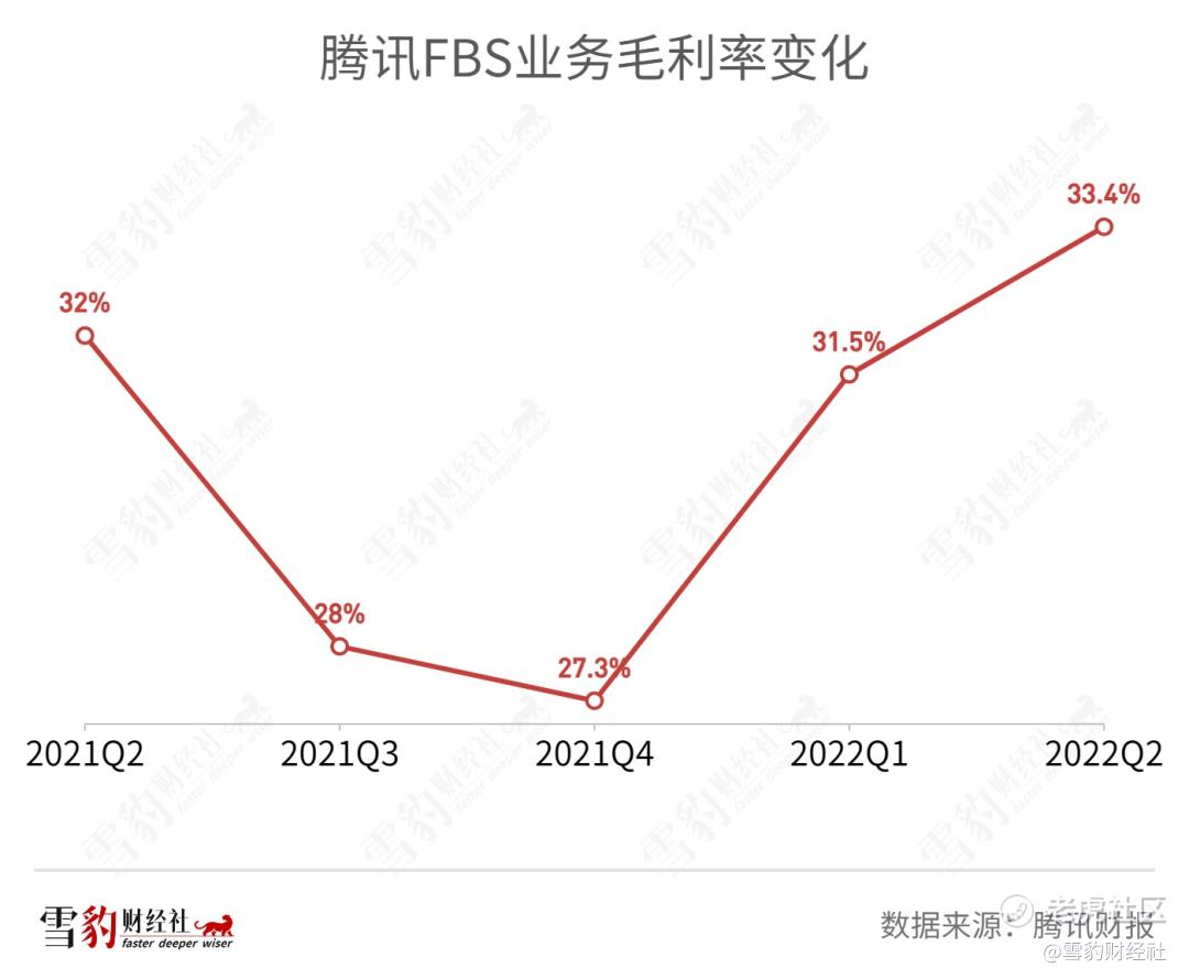 成本收窄最为明显的是FBS业务。2019年开始,财报单独披露FBS的财务数据,将其视为未来十年最重要的收入板块之一。但FBS既是增长的灵药,又是毛利的毒药,成本一直居高不下。(详见雪豹财经社《从7万亿高峰“腰斩”后,腾讯离反攻有多远?》)