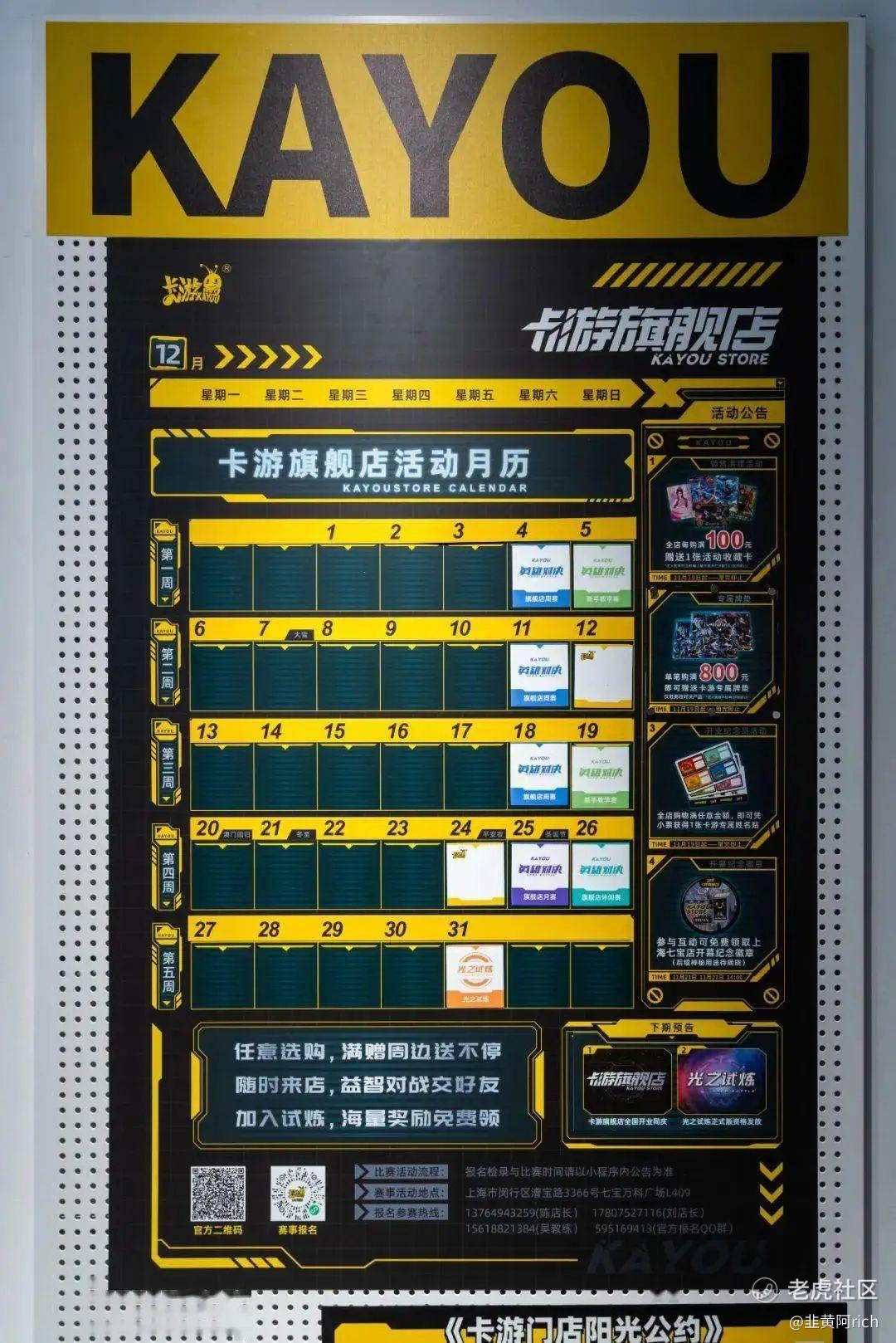 卡游的旗舰店,相比于“零售”属性,“服务”的属性更为突出。几乎每家店铺都设有活动区和对战区,活动场地比销售场地设得还要大。以上海七宝万科店为例,门口立有活动月历。