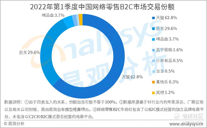 重要原因是,京东在电商赛道占据着相当的市场份额。据易观分析,今年Q1,京东成交总额同比增长18.6%,以29.6%的市场份额位列第二。