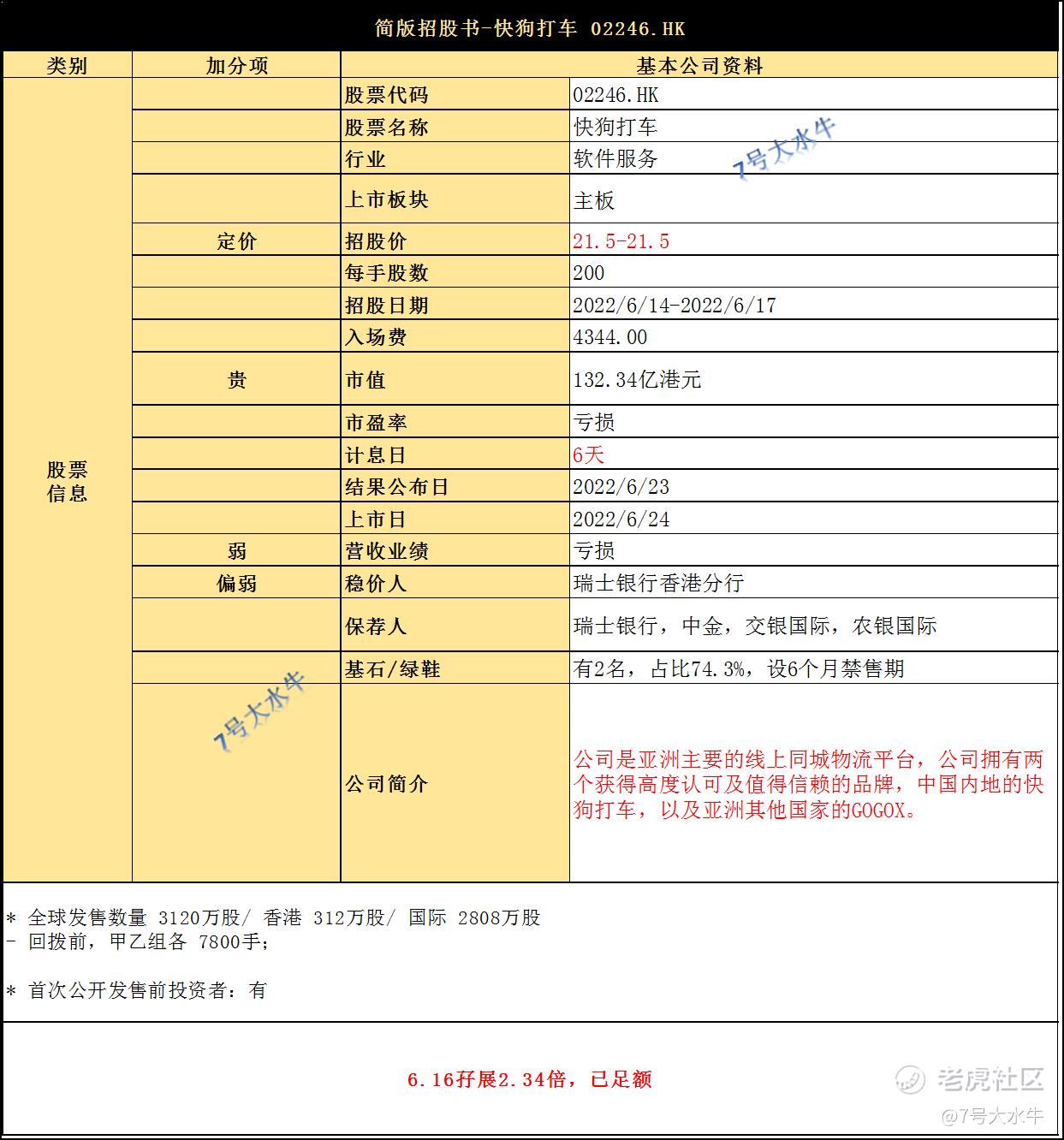 每股定价21.5港元,每手200股,入场费4344港元,预计6月24日上市。