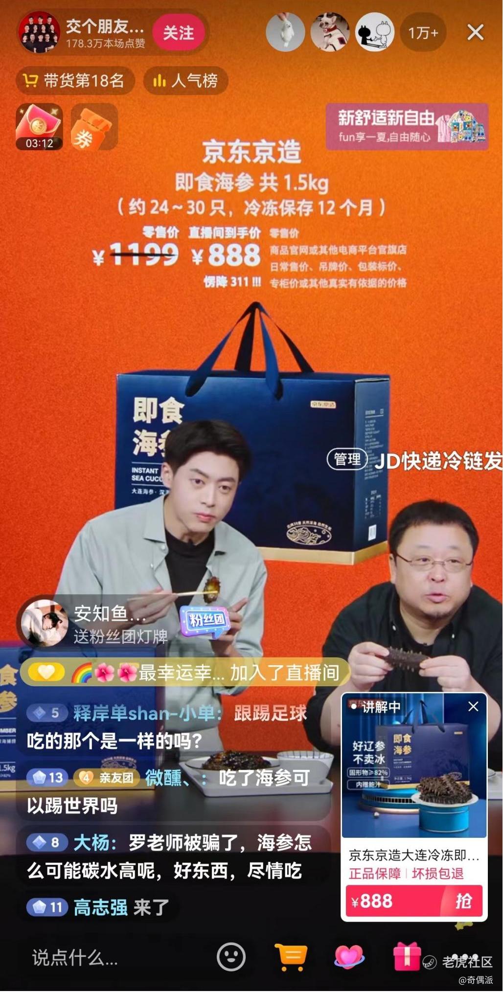 6月7日晚间,京东京造Q2新品发布会登陆罗永浩直播间,1000W户外移动电源、折叠露营车、即食海参等11款“质价比”新品出场,直播3小时累计收获228万人观看。