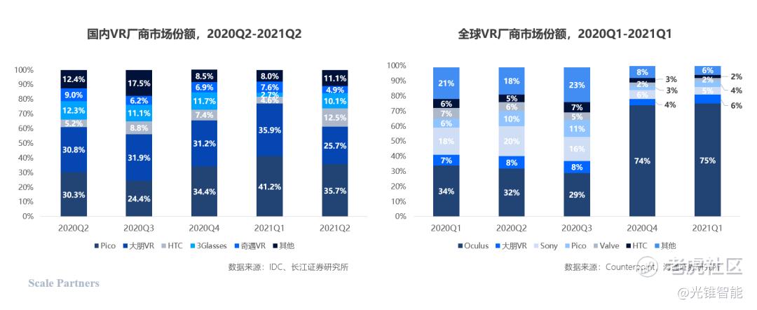 在国内市场,受到主机及网络适配性等因素影响,Oculus Quest系列产品并没有形成碾压优势,Pico、大朋、HTC、爱奇艺等企业都享有一定份额。