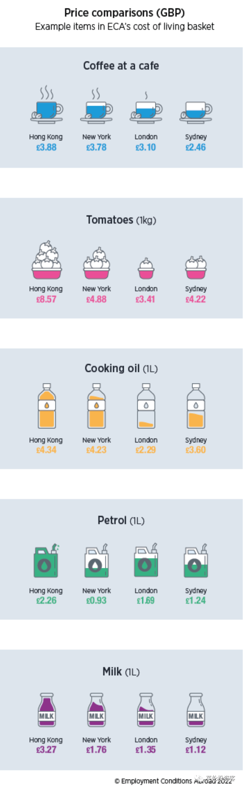 而对外派员工来说,这些榜单也能让TA了解在伦敦维持自己的生活方式和消费水平花销有多大,以提前做好理财规划。