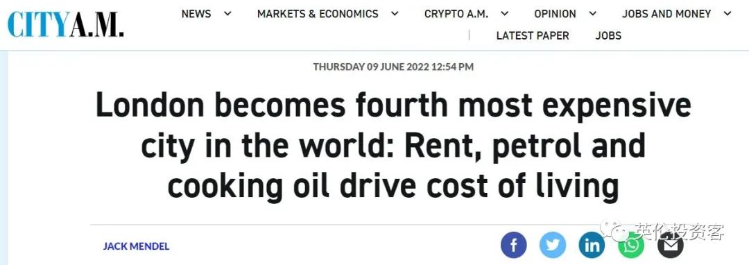 根据该榜单,伦敦是2022年全球第四贵的城市,比2021年的排名(第五)上升一位。