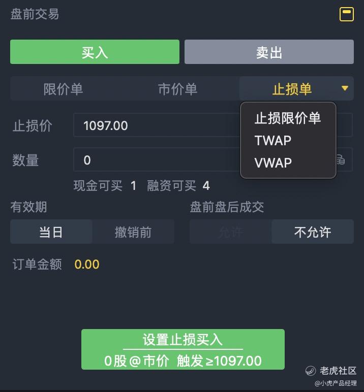点击【买入/卖出】进入下单页面,展开更多订单即可看到TWAP、VWAP算法单。