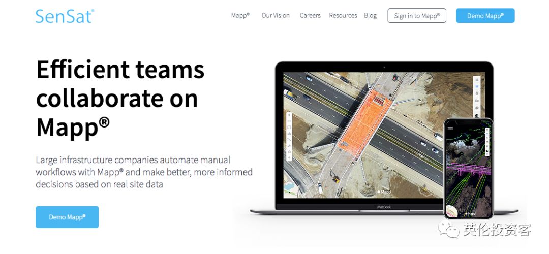 通过接入SenSat打造的Mapp平台,客户可以用机器可读的形式把真实世界的数据转化为高精度、数字化的三维模型,并通过传感装置实时反馈真实世界状况,经过计算机在线读取分析实时数据,帮助客户解决真实世界中的问题。