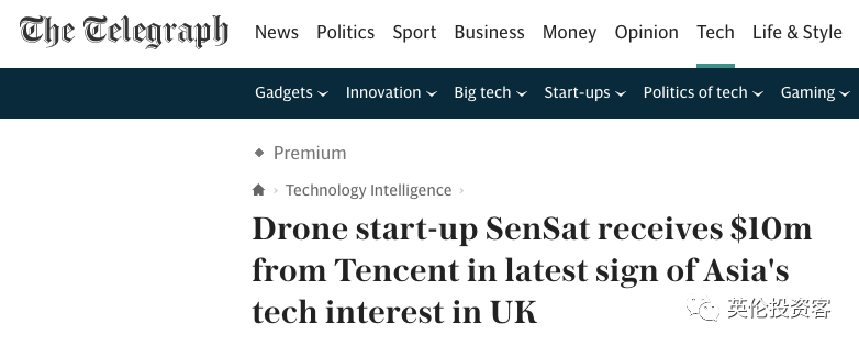 2019年10月12日,由中国腾讯牵头的财团已经完成了对英国人工智能公司SenSat的A轮投资,总投资额为1000万美元(约789万英镑,7065万人民币)。