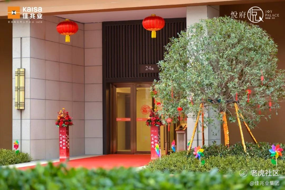办理现场、园区大门、景观园林、入户大堂等各处均被幸福和喜庆的装饰品点缀
