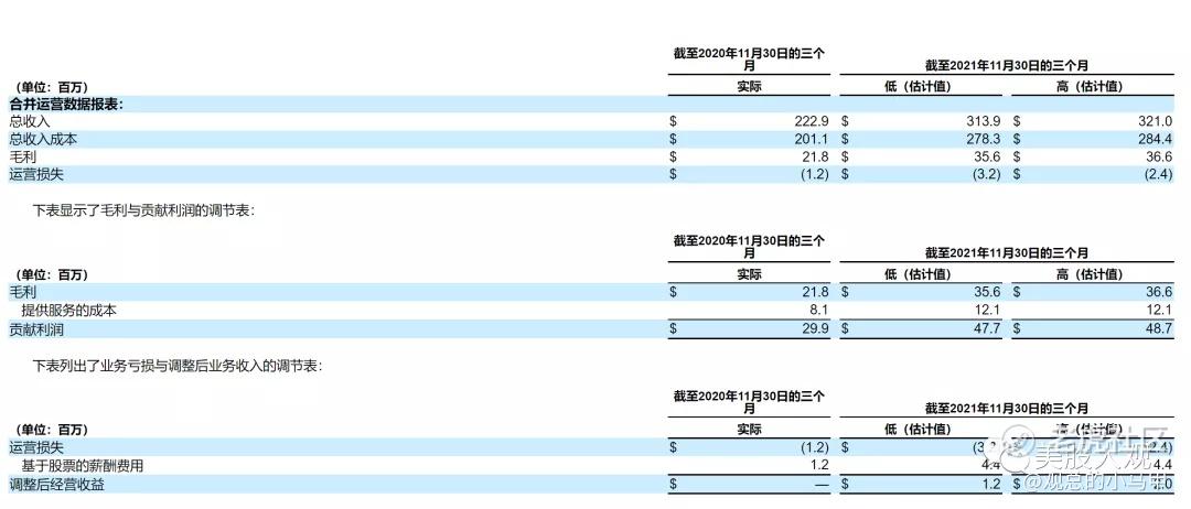 - 营运亏损预计在320万美元至240万美元之间,较截至2020年11月30日止三个月的亏损120万美元有所增加。我们预计运营亏损的增加主要是由于薪酬成本的增加,部分被毛利的增加所抵消。