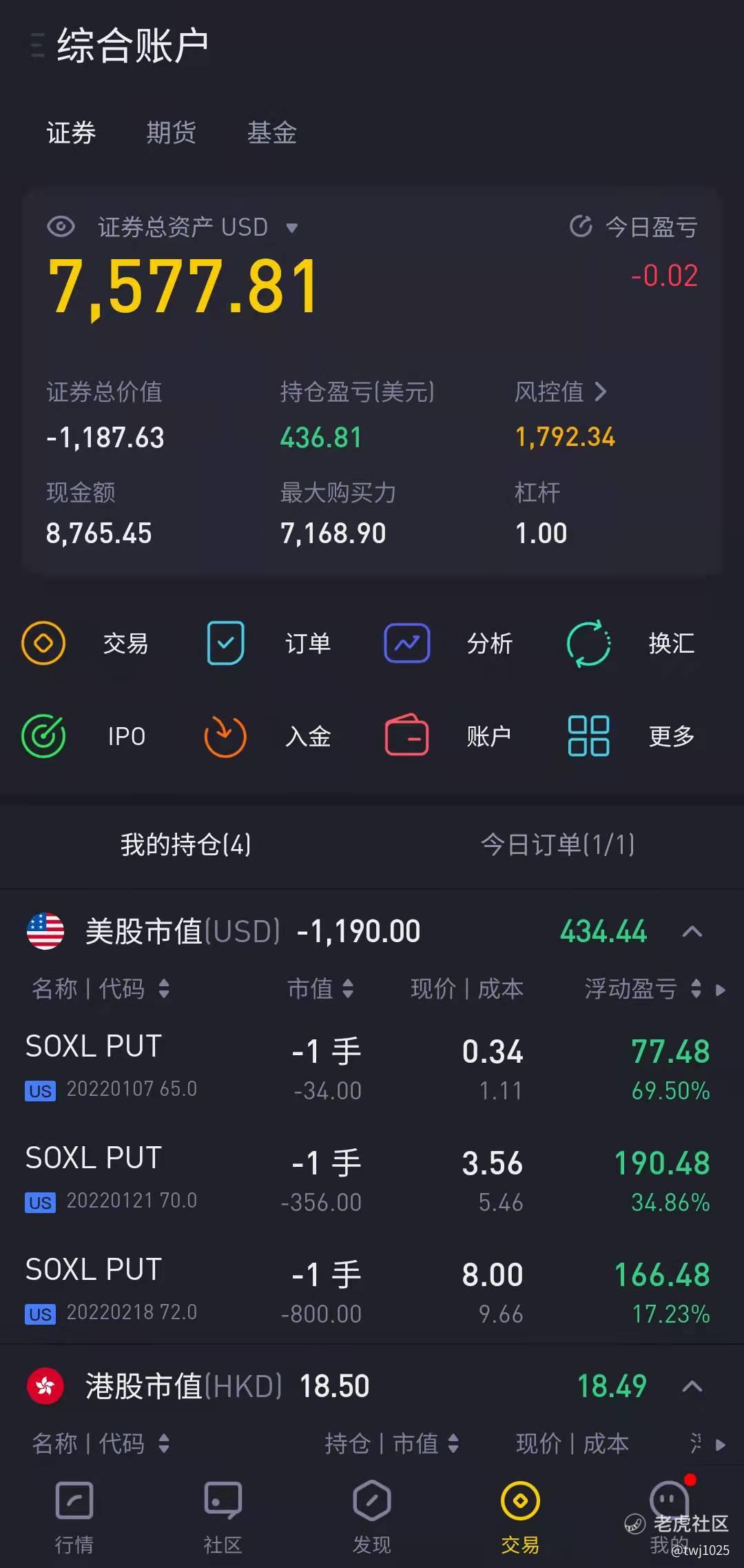 拿到一笔资金,马上入金老虎准备实行自己近期学习到的期权知识