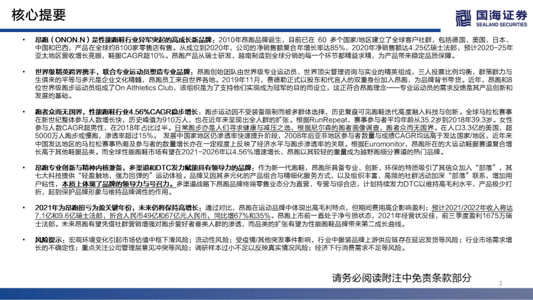 证券研究报告:海外高端品牌研究系列二:昂跑(ONON.N)——一双瑞士跑鞋的奇袭