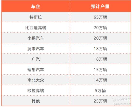 首先,以特斯拉$特斯拉(TSLA)$ 、蔚来、理想、比亚迪$比亚迪(002594)$ (部分车型)等为代表的高端智能电动汽车,明年的产量有望达到150万辆-200万辆,继续挤占BBA等传统燃油高端车型的市场份额。其中,特斯拉的产量可能高达65万辆,强力推出和宣传ID.系列车型的大众产量或将达到14万辆。