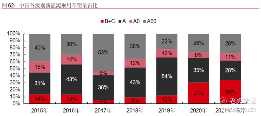 从新能源汽车推广初期至今,各级别车型的市占率变化很大。特别是A00级电动车和以B级和C级为主的高端电动车。