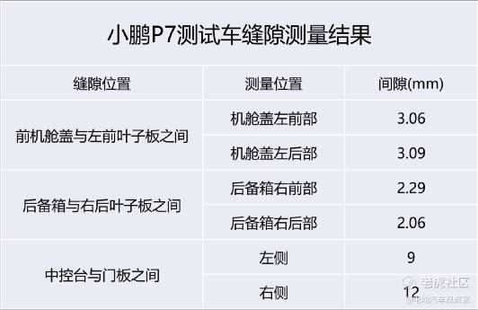测试中,用千分卡尺对小鹏P7测试车的前机舱盖、门板缝隙、尾箱盖缝隙进行了测量,测量结果如下: