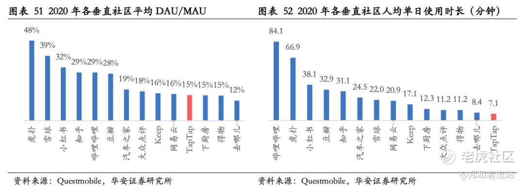 虽然,Blued的每个活跃用户平均每天花费的时间超过50分钟,与soul对比相差不大。但若,纵向对比一下其它垂直社区,蓝城兄弟的人均使用时长,也是高于一大批知名垂直社区的,比如小红书、雪球等;用户粘性(DAU/MAU)方面更是仅次于虎扑。