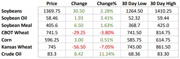 重要的基本主题保持不变,即拉尼娜现象对南美洲正在进行的生长季节的影响,以及由此导致的世界玉米和大豆资产负债表紧缩。短期内,小麦几乎有两个独立的资产负债表。同时,低蛋白小麦供应充足。高蛋白小麦供需依然紧张;然而,最近明尼阿波利斯小麦的下跌值得密切关注,以确定高蛋白小麦的进一步方向。