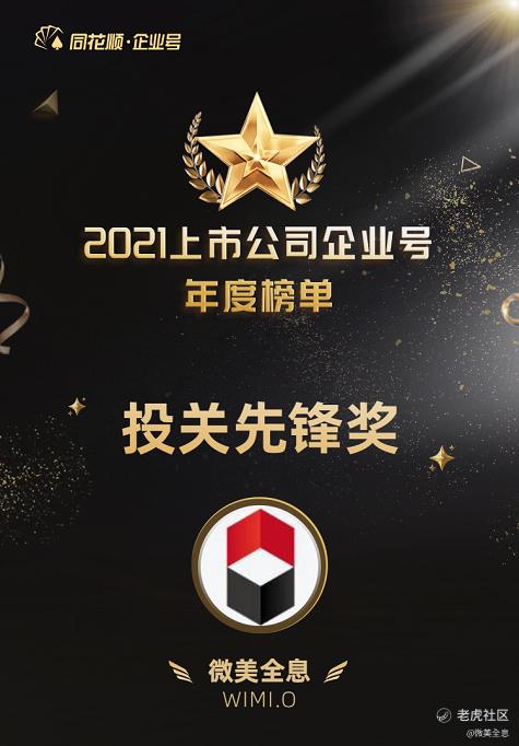 同花顺企业号2021年度榜单,涵盖 “最具影响力奖”、“最佳投关奖”、“投关先锋奖”、“最佳组织奖”共4大类奖项。此次评选是基于上市公司及协会在同花顺平台内账号关注度、文章数据、个股及话题热度、日常运营、调研投关活动等多维度数据综合评定。