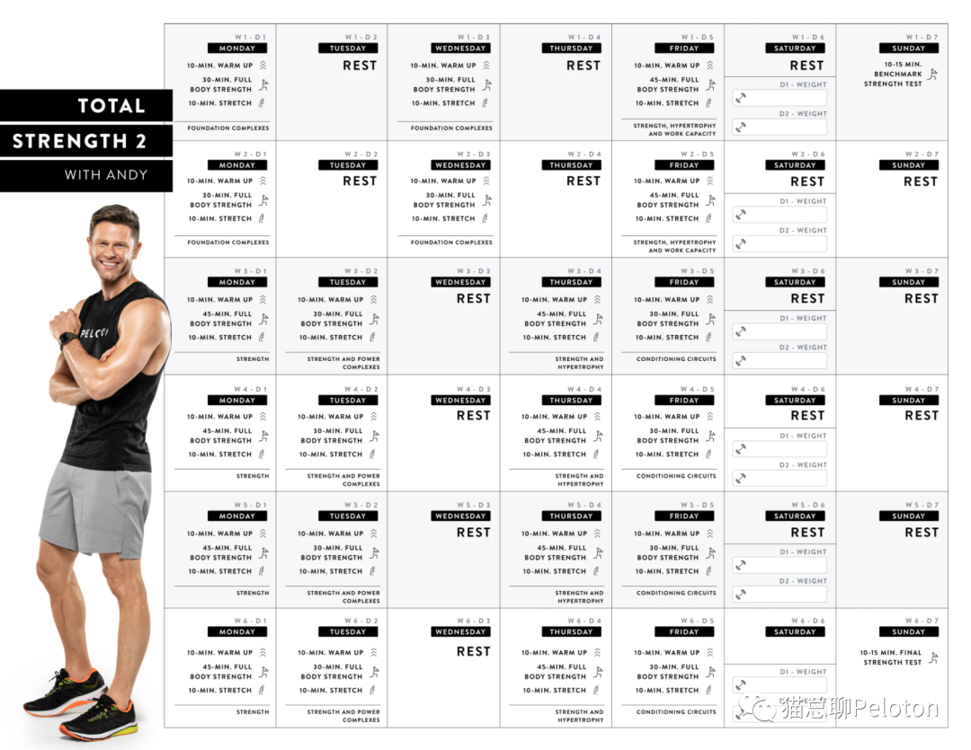 12/20,Peloton 推出了一个新的力量训练营课程,名为 《全面力量 2》,授课教练是 Andy Speer。这个训练营课程是《全面力量》的后续进阶版本。Peloton 在博客中详细解释了两个训练营课程的区别[1]: