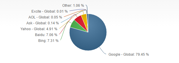 Google在搜索业务上有极强的护城河,根据NetMarketShare公布的数据,截止2017年7月,Google在全球搜索引擎市场上的占有率为79.45%,第二名Bing只有7.31%。