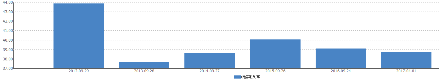 销售毛利率,是一个衡量盈利能力的指标,该数字越高则说明企业的盈利能力越强,控制成本的能力越强。近五年销售毛利率没有连续增长,近三年呈现出连续下降的趋势,但保持在38%+水平。