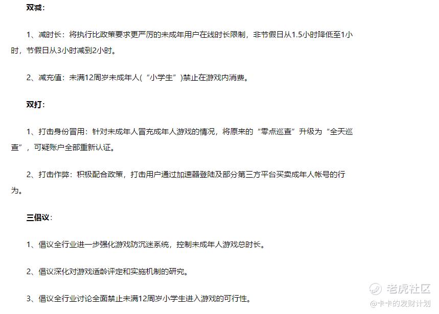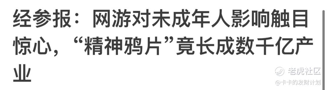 今天早上开盘前,某官媒发布了一篇关于未成年受到游戏行业的影响,并且将游戏比作“精神鸦片”,这都是十几年前的说法了,如今难道又要倒退十几年吗?这是要搞完教育行业后,又要整顿游戏行业吗?