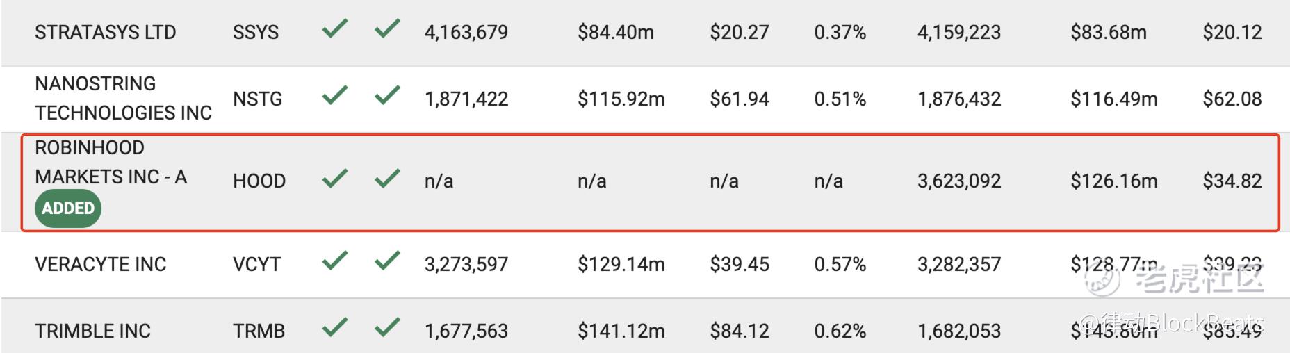律动 BlockBeats 消息,7 月 30 日,ARK 资产管理公司(Ark Investment Management)旗下 3 只 ARK ETF 在 Robinhood 上市纳斯达克首日购入近 460 万股 Robinhood 股票。持仓数据显示,旗舰基金 ARKK 以 1.26 亿美元买入 362 万股 Robinhood 股票,互联网创新主题基金 ARKW 以 2097 万美元买入 60 万股,金融科技创新主题基金 ARKF 以 1337 万美元买入 38 万股。根据 Robinhood 昨日收盘价计 34.82 每股计算,ARK 旗下基金共持有市值约 1.6 亿美元 Robinhood 股票。