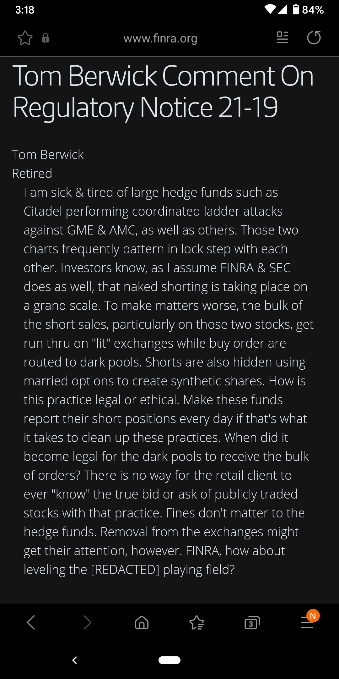 $GameStop(GME)$Short sellers being arrogant now because their ‘big bosses’ are using dark pool as a form of manipulation to prevent price from increasing (buy pressure) while using exchange for shortselling (sell pressure) decreasing the price further down.
