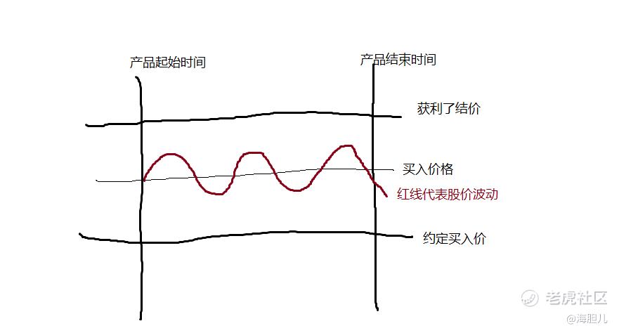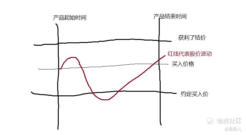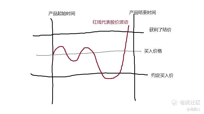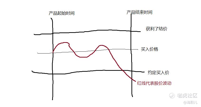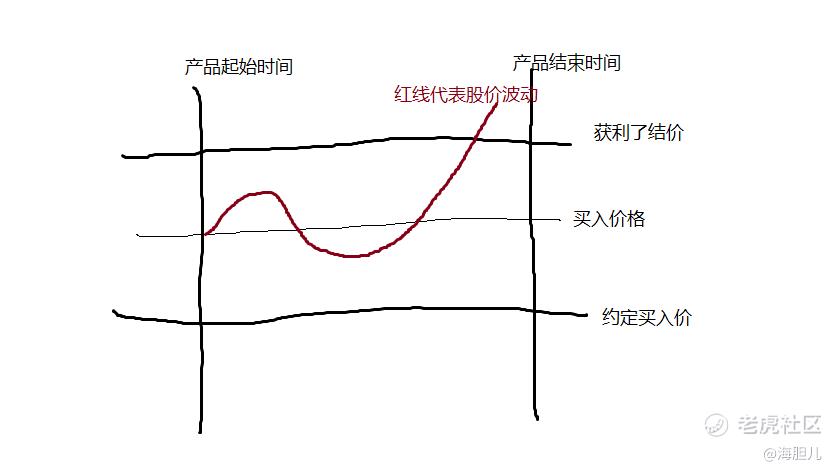 四、产品期限内,股价先触碰到了约定买入价,到产品结束时间,股价涨回在获利了结价和约定买入价之间。