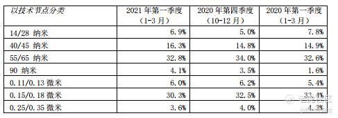 (资料来源:中芯国际截至2021年3月31日止三个月未经审核业绩公布)