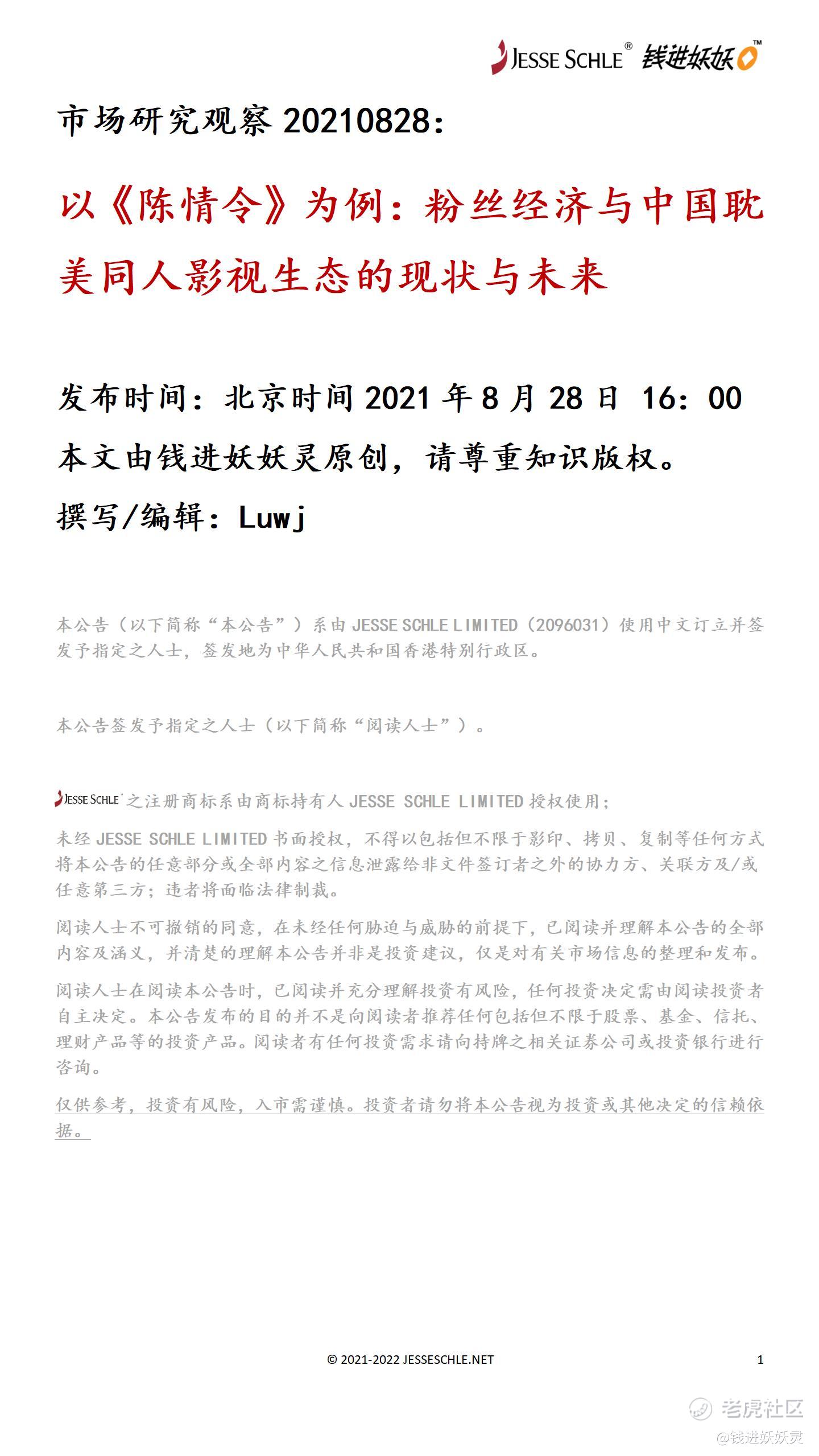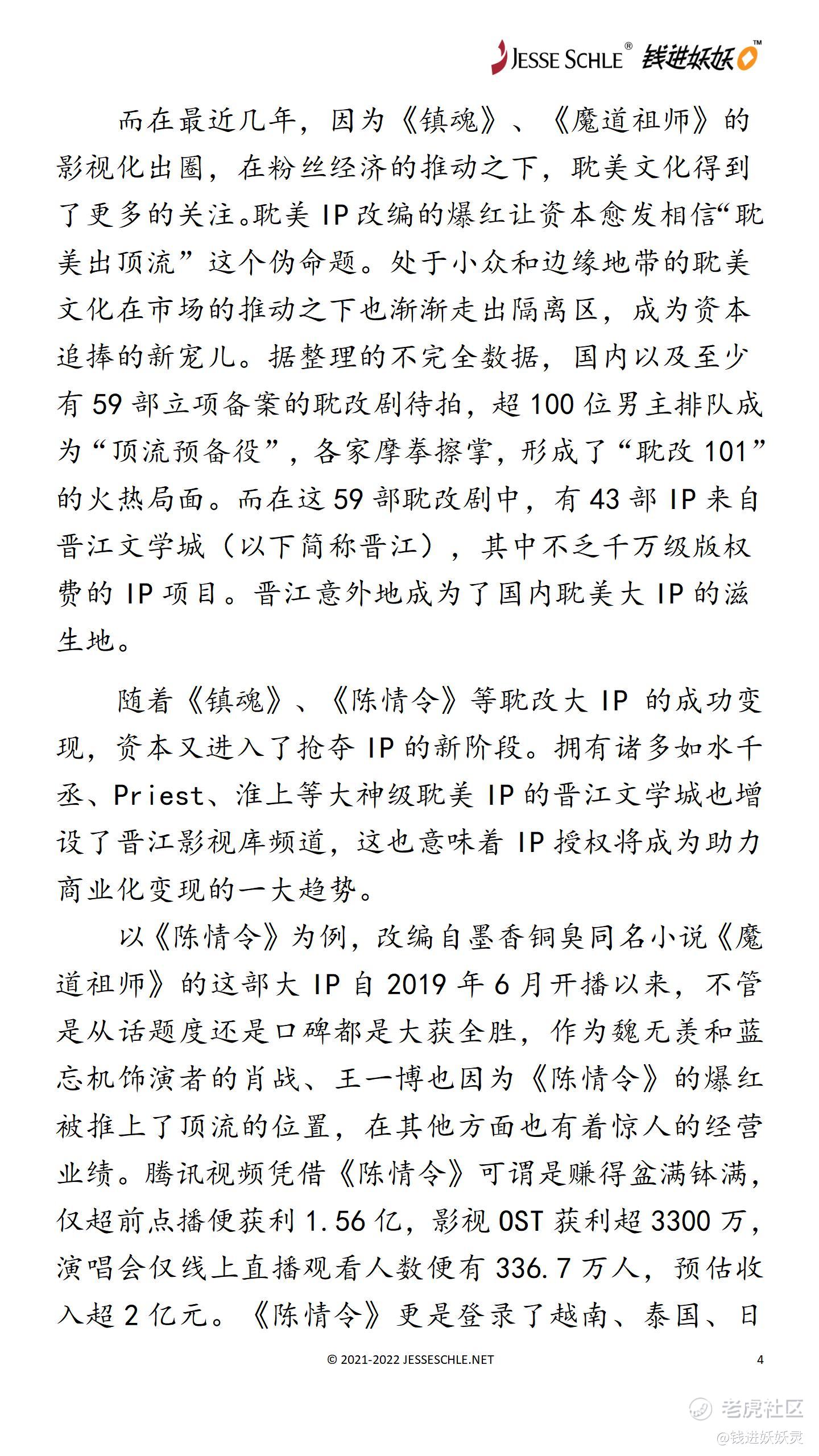 {"i18n":{"language":"zh_CN"},"detailType":1,"isChannel":false,"data":{"magic":2,"id":813105983,"tweetId":"813105983","gmtCreate":1630143218742,"gmtModify":1704956515312,"author":{"id":3586177860789667,"idStr":"3586177860789667","authorId":3586177860789667,"authorIdStr":"3586177860789667","name":"钱进妖妖灵","avatar":"https://static.tigerbbs.com/58ceda95ac1244f8e4c7201990bc4e1e","vip":6,"userType":6,"introduction":"财经自媒体","boolIsFan":false,"boolIsHead":false,"crmLevel":1,"crmLevelSwitch":0,"individualDisplayBadges":[],"fanSize":82,"starInvestorFlag":false},"themes":[{"themeId":"5f4e0a7185a74ed196abff08008266de","categoryId":"b76d3c59fc044df59779c041b25852a6","name":"分享我的交易策略","type":0,"rnLink":"https://laohu8.com/RN?name=RNTheme&page=/theme/detail&rndata={\"themeId\":5f4e0a7185a74ed196abff08008266de}&rnconfig={\"headerBarHidden\": true}","description":"交易策略分享,说一说自己在交易中的那些神操作吧,你的idea说不定价值百万!","image":"https://static.tigerbbs.com/cd8eaff2e99964ab7a80d92cc196fcd3"}],"images":[{"img":"https://static.tigerbbs.com/1dfe37aeaf37e1e24304b7b6fd3e016e"},{"img":"https://static.tigerbbs.com/25f0c3f15bc7fb9d1dc5661c86f8d820"},{"img":"https://static.tigerbbs.com/6a703854661160fd1c7245f6aae36a0c"},{"img":"https://static.tigerbbs.com/f8092f854e036c7973cb7c4daaeb1ce8"},{"img":"https://static.tigerbbs.com/51849924b90374086fd36302325cabb1"},{"img":"https://static.tigerbbs.com/f9b5ebabb09d197f73da12d25bbe5f89"},{"img":"https://static.tigerbbs.com/02d2554d108a1862d2ed7943865df3a7"},{"img":"https://static.tigerbbs.com/c620366e72ea6a0aebe06527b545d443"},{"img":"https://static.tigerbbs.com/59d907c05095d7d550ad57d0cdcf3046"},{"img":"https://static.tigerbbs.com/53254135394a4e47a57799dae7de64c0"},{"img":"https://static.tigerbbs.com/6aa4d3de7466e400bd5e39e996e8009a"},{"img":"https://static.tigerbbs.com/83405cd51d005e07f266717192943164"}],"coverImages":[{"img":"https://static.tigerbbs.com/c620366e72ea6a0aebe06527b545d443","width":"2350","height":"1001"},{"img":"https://static.tigerbbs.com/53254135394a4e47a57799dae7de64c0","width":"1440","height":"2560"},{"img":"https://static.tigerbbs.com/59d907c05095d7d550ad57d0cdcf3046","width":"1440","height":"2560"}],"title":"以《陈情令》为例:粉丝经济与中国耽美同人影视生态的现状与未来","extraTitle":"","html":"<html><head></head><body><p>未来中国影视企业要想自己的财报数据相比较而言更加好看,尤其是耽美影视项目,除了回归影视作品本身,用内容优秀制作精良的作品吸引观众之外,作品的主流价值观、参演人员以及后续的宣传盈利模式都要时刻警惕。</p><p class=\"t-img-caption\"><img src=\"https://static.tigerbbs.com/c620366e72ea6a0aebe06527b545d443\"></p><p class=\"t-img-caption\"><img src=\"https://static.tigerbbs.com/83405cd51d005e07f266717192943164\"></p><p class=\"t-img-caption\"><img src=\"https://static.tigerbbs.com/f9b5ebabb09d197f73da12d25bbe5f89\"></p><p class=\"t-img-caption\"><img src=\"https://static.tigerbbs.com/f8092f854e036c7973cb7c4daaeb1ce8\"></p><p class=\"t-img-caption\"><img src=\"https://static.tigerbbs.com/25f0c3f15bc7fb9d1dc5661c86f8d820\"></p><p class=\"t-img-caption\"><img src=\"https://static.tigerbbs.com/53254135394a4e47a57799dae7de64c0\"></p><p class=\"t-img-caption\"><img src=\"https://static.tigerbbs.com/59d907c05095d7d550ad57d0cdcf3046\"></p><p class=\"t-img-caption\"><img src=\"https://static.tigerbbs.com/51849924b90374086fd36302325cabb1\"></p><p class=\"t-img-caption\"><img src=\"https://static.tigerbbs.com/6a703854661160fd1c7245f6aae36a0c\"></p><p class=\"t-img-caption\"><img src=\"https://static.tigerbbs.com/02d2554d108a1862d2ed7943865df3a7\"></p><p class=\"t-img-caption\"><img src=\"https://static.tigerbbs.com/1dfe37aeaf37e1e24304b7b6fd3e016e\"></p><p class=\"t-img-caption\"><img src=\"https://static.tigerbbs.com/6aa4d3de7466e400bd5e39e996e8009a\"></p></body></html>","htmlText":"<html><head></head><body><p>未来中国影视企业要想自己的财报数据相比较而言更加好看,尤其是耽美影视项目,除了回归影视作品本身,用内容优秀制作精良的作品吸引观众之外,作品的主流价值观、参演人员以及后续的宣传盈利模式都要时刻警惕。</p><p class=\"t-img-caption\"><img src=\"https://static.tigerbbs.com/c620366e72ea6a0aebe06527b545d443\"></p><p class=\"t-img-caption\"><img src=\"https://static.tigerbbs.com/83405cd51d005e07f266717192943164\"></p><p class=\"t-img-caption\"><img src=\"https://static.tigerbbs.com/f9b5ebabb09d197f73da12d25bbe5f89\"></p><p class=\"t-img-caption\"><img src=\"https://static.tigerbbs.com/f8092f854e036c7973cb7c4daaeb1ce8\"></p><p class=\"t-img-caption\"><img src=\"https://static.tigerbbs.com/25f0c3f15bc7fb9d1dc5661c86f8d820\"></p><p class=\"t-img-caption\"><img src=\"https://static.tigerbbs.com/53254135394a4e47a57799dae7de64c0\"></p><p class=\"t-img-caption\"><img src=\"https://static.tigerbbs.com/59d907c05095d7d550ad57d0cdcf3046\"></p><p class=\"t-img-caption\"><img src=\"https://static.tigerbbs.com/51849924b90374086fd36302325cabb1\"></p><p class=\"t-img-caption\"><img src=\"https://static.tigerbbs.com/6a703854661160fd1c7245f6aae36a0c\"></p><p class=\"t-img-caption\"><img src=\"https://static.tigerbbs.com/02d2554d108a1862d2ed7943865df3a7\"></p><p class=\"t-img-caption\"><img src=\"https://static.tigerbbs.com/1dfe37aeaf37e1e24304b7b6fd3e016e\"></p><p class=\"t-img-caption\"><img src=\"https://static.tigerbbs.com/6aa4d3de7466e400bd5e39e996e8009a\"></p></body></html>","text":"未来中国影视企业要想自己的财报数据相比较而言更加好看,尤其是耽美影视项目,除了回归影视作品本身,用内容优秀制作精良的作品吸引观众之外,作品的主流价值观、参演人员以及后续的宣传盈利模式都要时刻警惕。","highlighted":1,"essential":1,"paper":2,"likeSize":0,"commentSize":0,"repostSize":0,"favoriteSize":0,"link":"https://laohu8.co