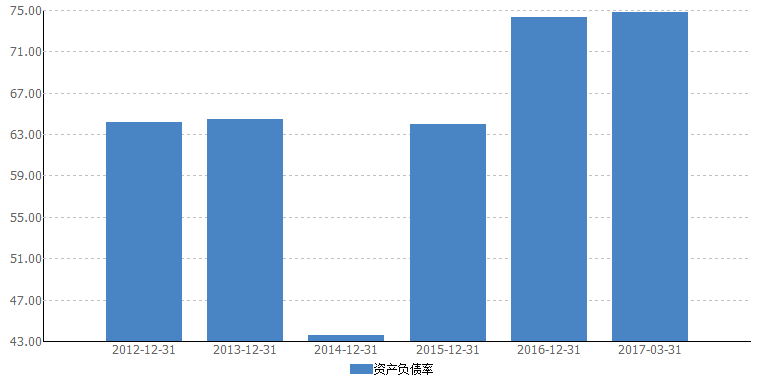 是期末负债总额除以资产总额的百分比,也就是负债总额与资产总额的比例关系。资产负债率反映在总资产中有多大比例是通过借债来筹资的,也可以衡量企业在清算时保护债权人利益的程度。近两年公司的资产负债率较高,2016财年为74.30%。