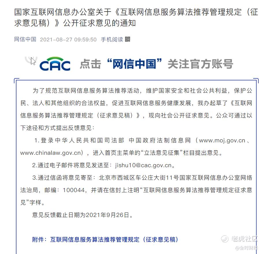 网信办发布《互联网信息服务算法推荐管理规定(征求意见稿)》