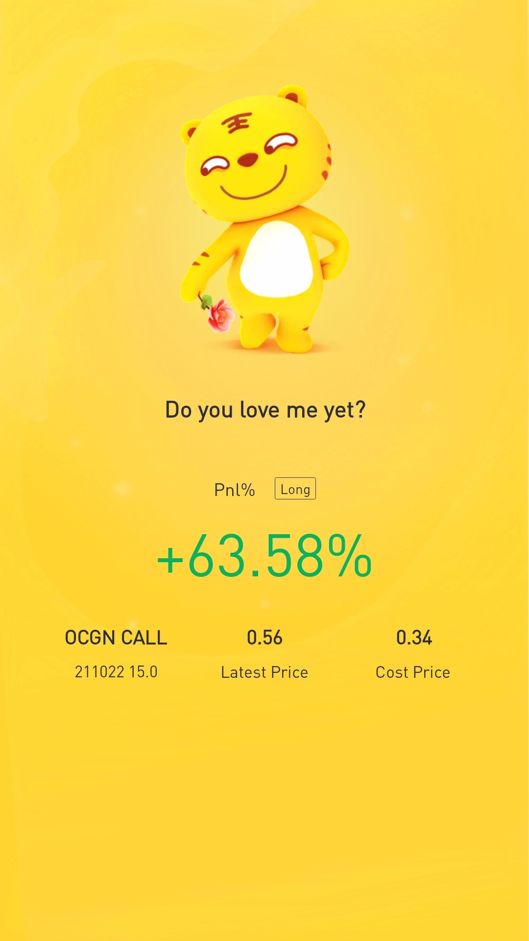 $OCGN 20211022 15.0 CALL(OCGN)$to the moon we go? if you bought last week its @.25. would be almost 200% profit at peak yesterday. still holding to the moon when WHO approves.