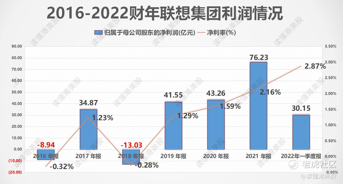 过去这几年里,联想集团2016和2018两个财年净利润为负,合计亏损接近22亿元。截至2021年6月30日,联想集团净利润为30.15亿元人民币,同比增长119%;联想的净利率为2.87%,是过去十三年的新高。