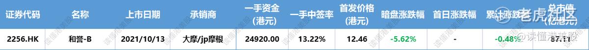新股上市:和誉-B(2256.HK)正式挂牌上市。和其他的“-B”股一样,和誉暗盘表现不佳,最终收跌5.62%。截止到今日收盘,和誉最终收跌0.48%,总市值为87.11亿港元。