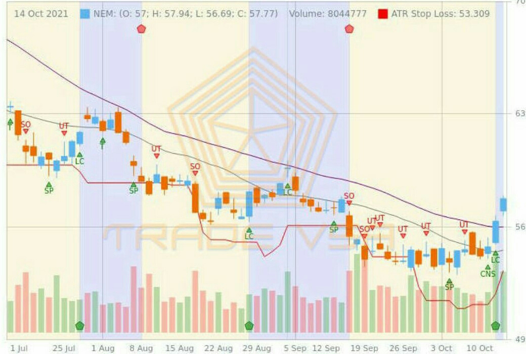 Shown Sign of Strength ie 12/10/21 CNS, 13/10/21 LC with Green Pentagon, 14/10/21 UpBar Above MA20 & MA40