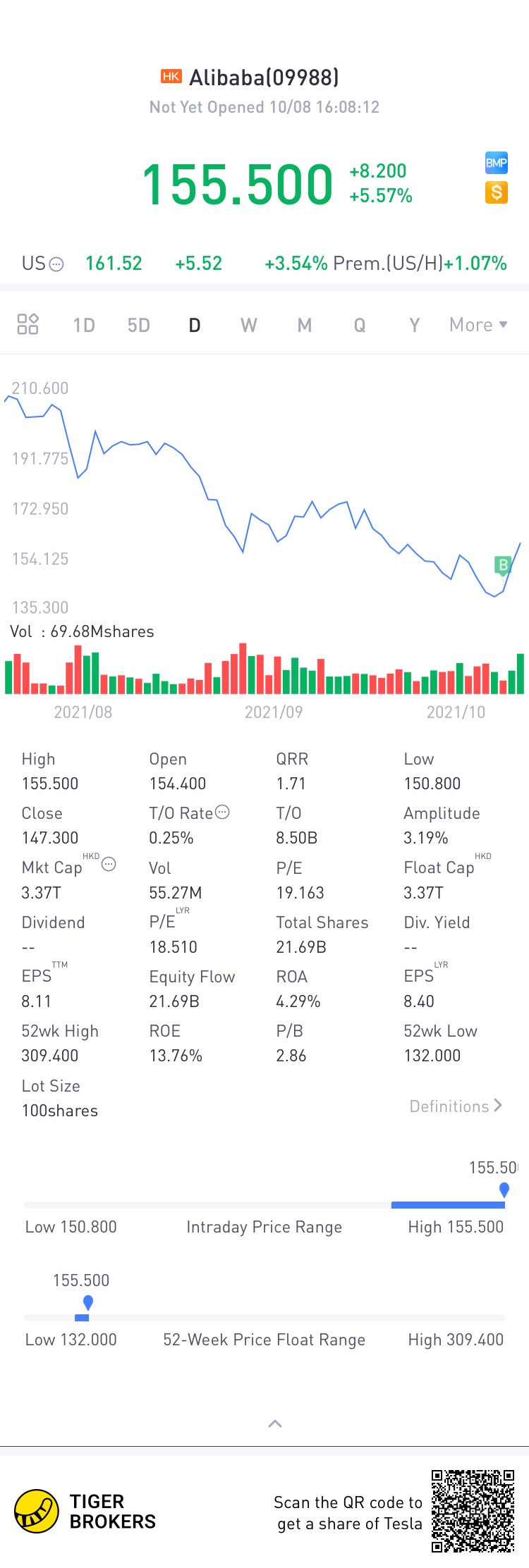 阿里巴巴-SW是时候奋起直追了!😀,💖,🙌,💪,回归时间,回收价值,为基本面强势中概股!