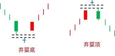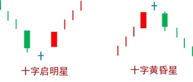启明星和黄昏星中的第二个K线位十字线时称为十字启明星和十字黄昏星。如果第个K线与前后两个K线均为纯跳空(影线也不重叠),则称为弃婴形态,有效性应更强。