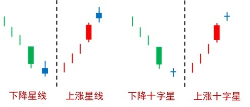 四种典型的星线反转形态:启明星、黄昏星、十字星和流星。