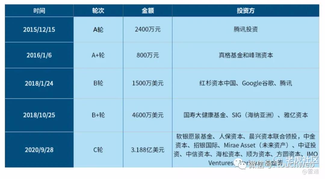 红杉投资4000万美元,腾讯投资3000万美元,IMO投资2800万美元,和暄资本投资2700万美元,中国生物制药投资1200万美元,Neumann Capital投资700万美元,Artisan投资500万美元,此外,一些老股东参与跟投。