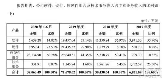 2019年,它发布求索芯片,后续发布了基于求索芯片的原石系列服务器、前沿系列边缘计算设备,希望结合自己的软件服务推向市场。这一年,曾经占主导地位的软件服务收入首次受到挤压,硬件服务所占比重越来越大。