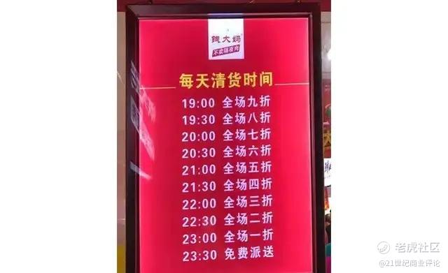 为了实现“日清”,钱大妈每家门店都在醒目位置注明打折时间,晚上19时至23:30时,九折起,每半小时降一折,23:30后全场免费。