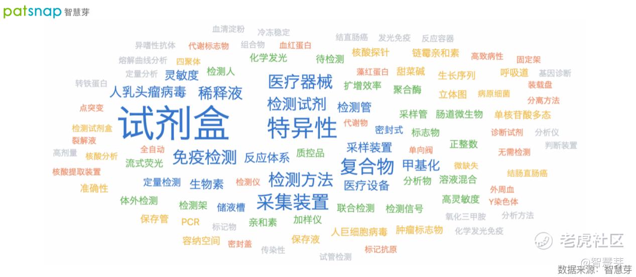 从上述专利文本分析可知,透景生命近几年的专利布局主要集中于试剂盒、特异性、复合物、采集装置、检测方法、医疗器械、免疫检测等专业技术领域(详见图2)。