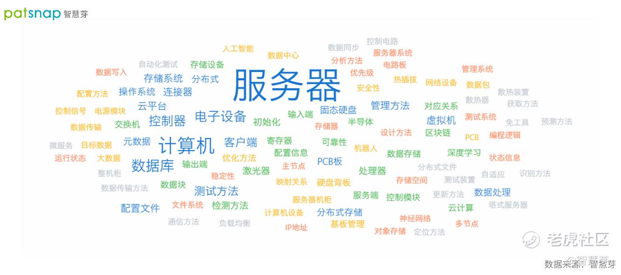 从上述专利文本分析可知,浪潮近几年的专利布局主要集中于服务器、计算机、数据库、控制器、连接器、虚拟机、云平台等专业技术领域(详见图2)。