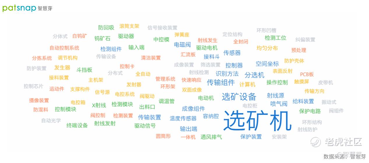 从上述专利文本分析可知,好朋友科技近几年的专利布局主要集中于选矿机、选矿设备、传输组件、分选机、空间坐标、喷气阀、输出端、控制器、成像组件等专业技术领域(详见图1)。