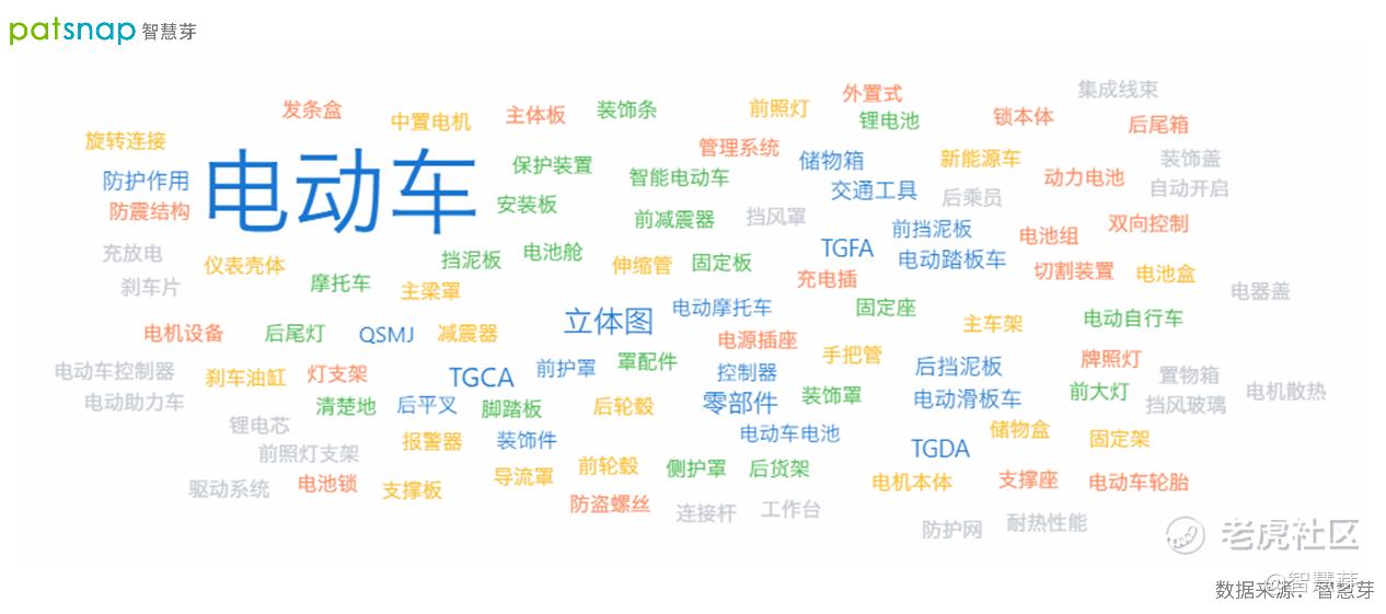 从上述专利文本分析可知,速珂近几年的专利布局主要集中于电动车、TGCA、零部件、TGFA、TGDA、电动踏板车等专业技术领域(详见图3)。