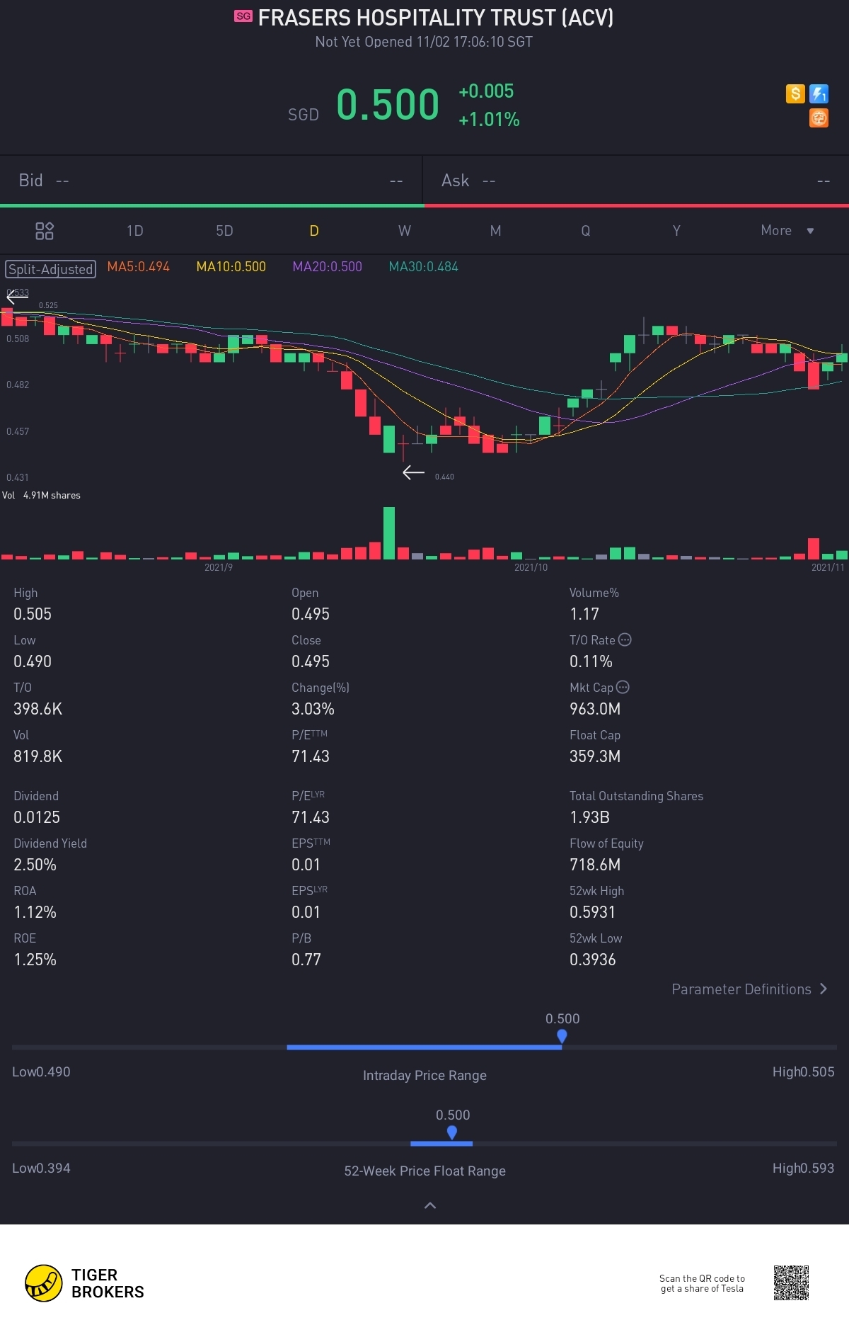 $FRASERS HOSPITALITY TRUST(ACV.SI)$