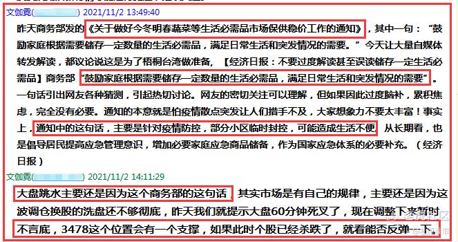 总体上,今日指数果然还是守住了3500点,与我们的判断一致,这个位置的强度我们能看到,但是今天是踩的最狠的一次,可一可二不可三,次数多了这个位置的支撑强度就给消耗了,今天的大跌原因之一就是市场过度的解读,商务部最重要的是要部署蔬菜等生活必需品市场保供稳价。其中包含多条内容,最重要的其实是要求相关单位提前做好准备,做好供应。个股像咱们教学群里最后说的那样,关注一下今天已经杀跌了,就看能否反弹一下了,手上要是有这样的票就可以守一下,但是要控制好仓位,不要满仓在里面等,否则埋在尘埃下,可难以回血了。市场资金这丰富的想象力啊,因为过度解读下午的黄金还拉了一波,但是导致其他大部分个股是下跌的。今日尾盘虽然出现回收,但是明天依旧存在不稳定的预期。今日虽然大跌但是外资依旧稳定流入,大资金依旧围绕着几个赛道在操作,半导体这几天的反弹有所要反转的感觉,电新今日继续轮动调整,军工方面近期受到资金青睐,一是满足了资金的高低切换的防御性需求,二是两岸关系紧张,给到了一个炒作的预期,今天也很明显的表现的是很积极,军工也有继续发散的预期。今天主力进场的方向还是超跌后的反弹为主,但军工与半导体强度还是足够的,今日指数再次收复失地,这个位置持续下跌的空间有限,明日会有捡便宜的机会。指数会继续在等待新主线的过程中保持轮动震荡格局。